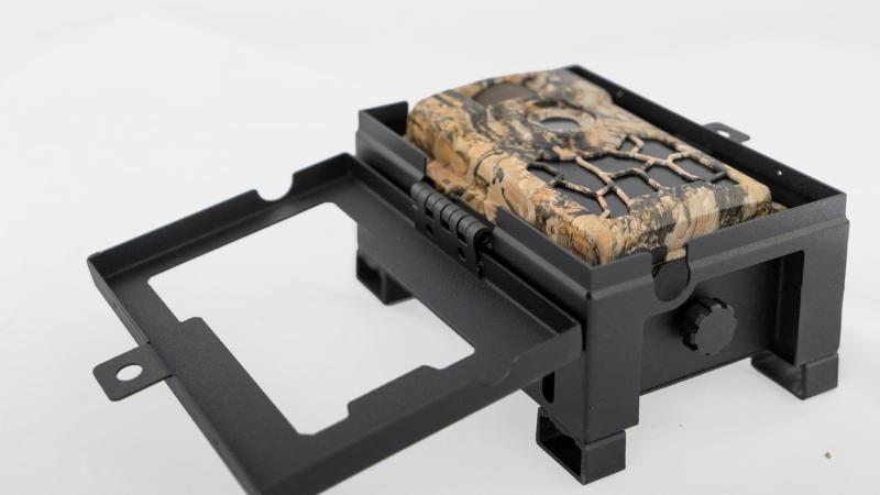 První a zároveň nejzásadnější vychytávkou je jistící šroub, kterým fotopast pevně přichytíte ve spodní části pevně do boxu. To oceníte především v situaci, kdy je fotopast uchycena ve větší výšce a musíte se k ní dostat například na žebříku. Fotopast je vždy nakloněna v určitém úhlu (tak, jak potřebujete) a v momentě, kdy u ní potřebujete vyjmout a vyměnit baterie, tak je fotopast pevně fixována a předejdete tak tomu, že by Vám fotopast po otevření boxu vypadla.