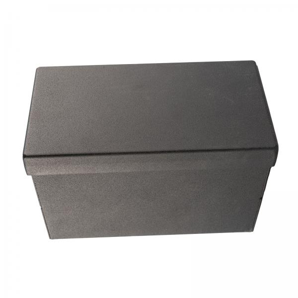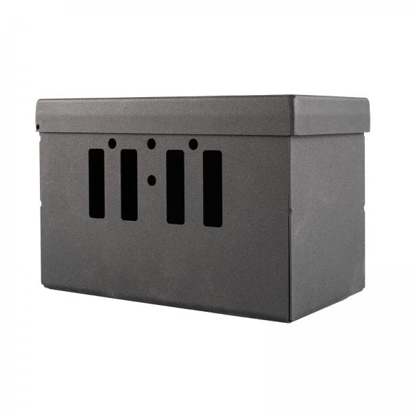 Ochranná kovová skříňka pro baterii 12V o vnitřních rozměrech 85*165*100 mm (d*š*h). Skříňka je nejlepší volbou pro ochranu baterie proti odcizení nebo vandalizmu. Kovová uzamykatelná skříňka na baterii 12V s možností kombinace s lanovým nebo visacím zámkem. Extrémně odolné provedení ze silného ocelového plechu s práškovým lakováním. Jedná se o českou precizní výrobu! Baterie není součástí ochranné kovové skříňky.