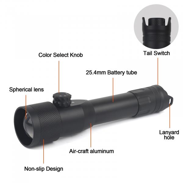 | Režimy: | 4 světelné režimy (bílý, zelený, červený, IR 940 nm - lidskému oku neviditelný) |